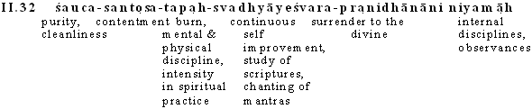 - continuous self improvement, study of the scriptures, and chanting of mantras (svadhyaya), and
